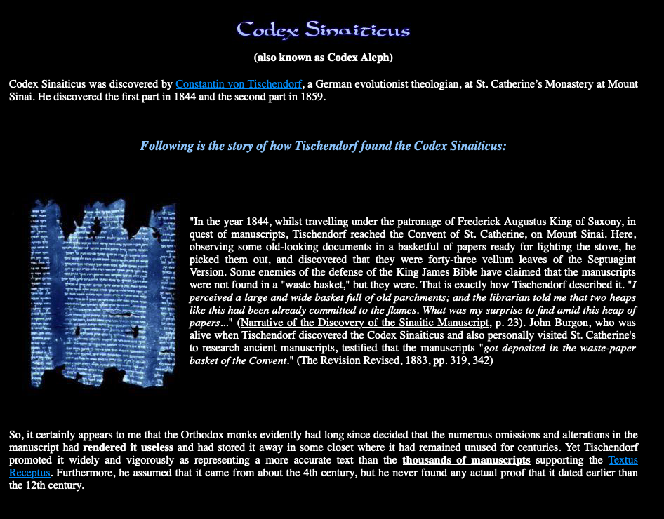Consider these facts and oddities relating to the Codex Sinaiticus: