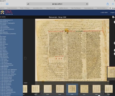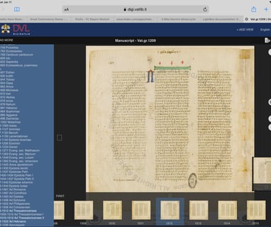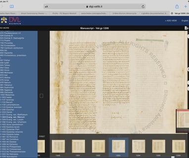 Look carefully at this Picture. See the blue drop cap? Problem is that drop caps are a more recent invention and not from the 4th Century. Also, blue and green colors and the style is ALL Medieval time period. NO Colors in 4th Century Manuscripts anywhere!